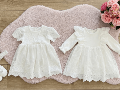 Tak! W przeciwieństwie do ślubów, na chrzcinach biel jest jak najbardziej dozwolona dla mamy. Kreacje w kolorze białym, kremowym lub ecru pięknie korespondują z ubrankiem dziecka i podkreślają radosny charakter dnia.