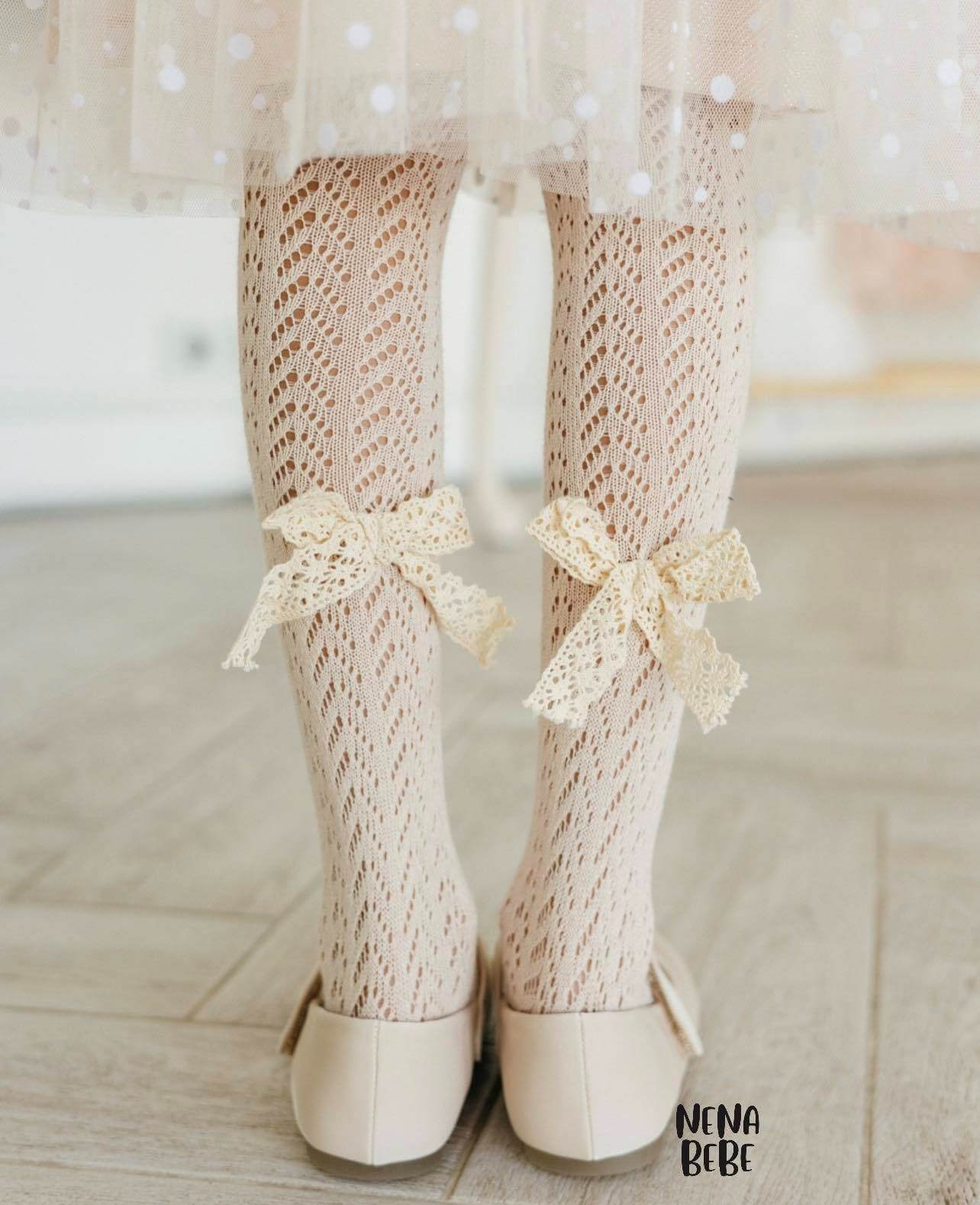 Urocze i eleganckie rajstopki do chrztu ażurowe z bawełnianą kokardą w stylu boho. Rajstopki niemowlęce doskonale uzupełnią kreację do chrztu Twojego maluszka. Do wyboru rozmiary 0-6 miesięcy lub 6-12 miesięcy. Rajstopki są bardzo wygodne i jednocześnie eleganckie, dzięki czemu będą idealnym wyborem w tym ważnym dniu, jakim jest Chrzest Święty.