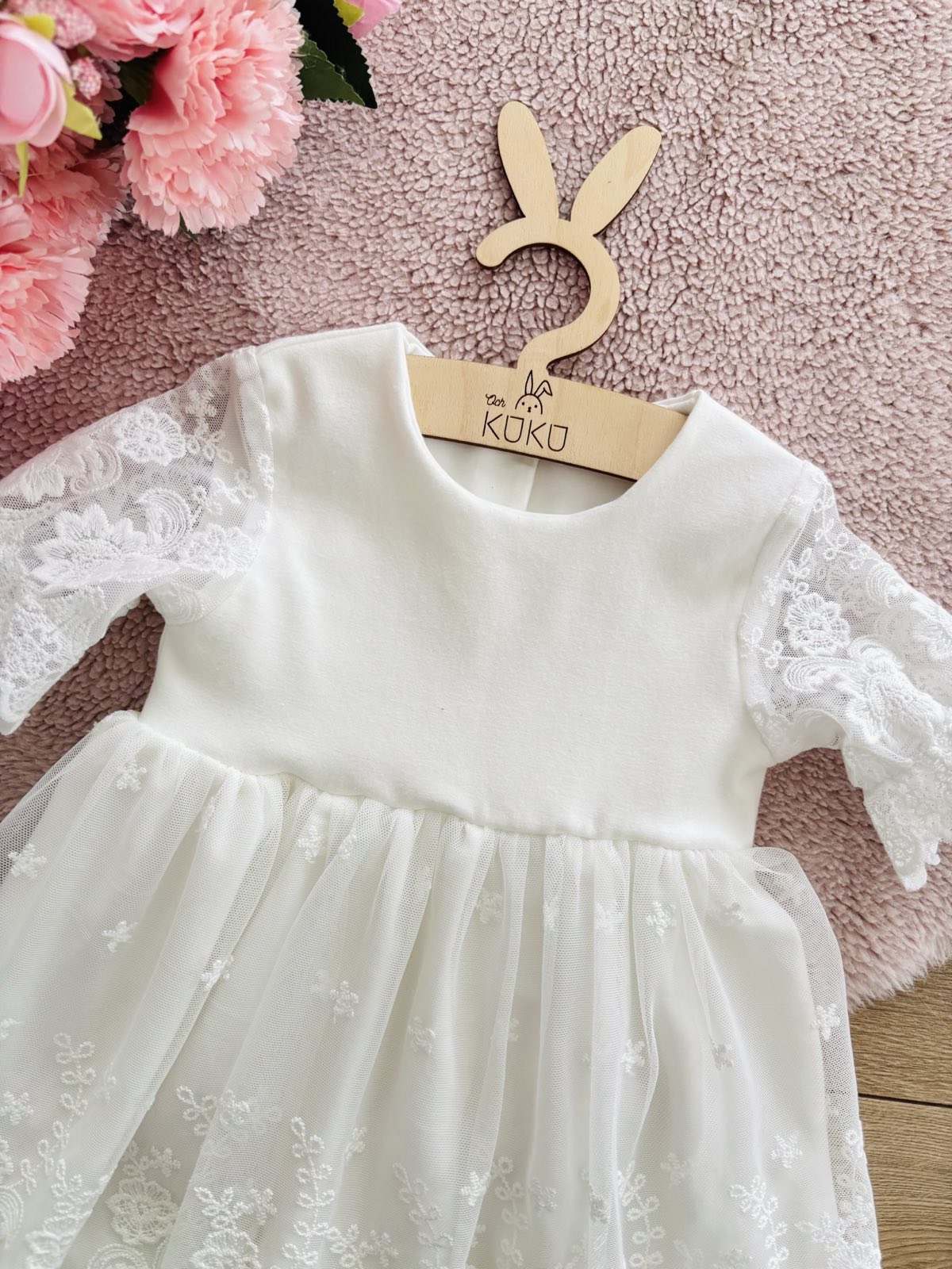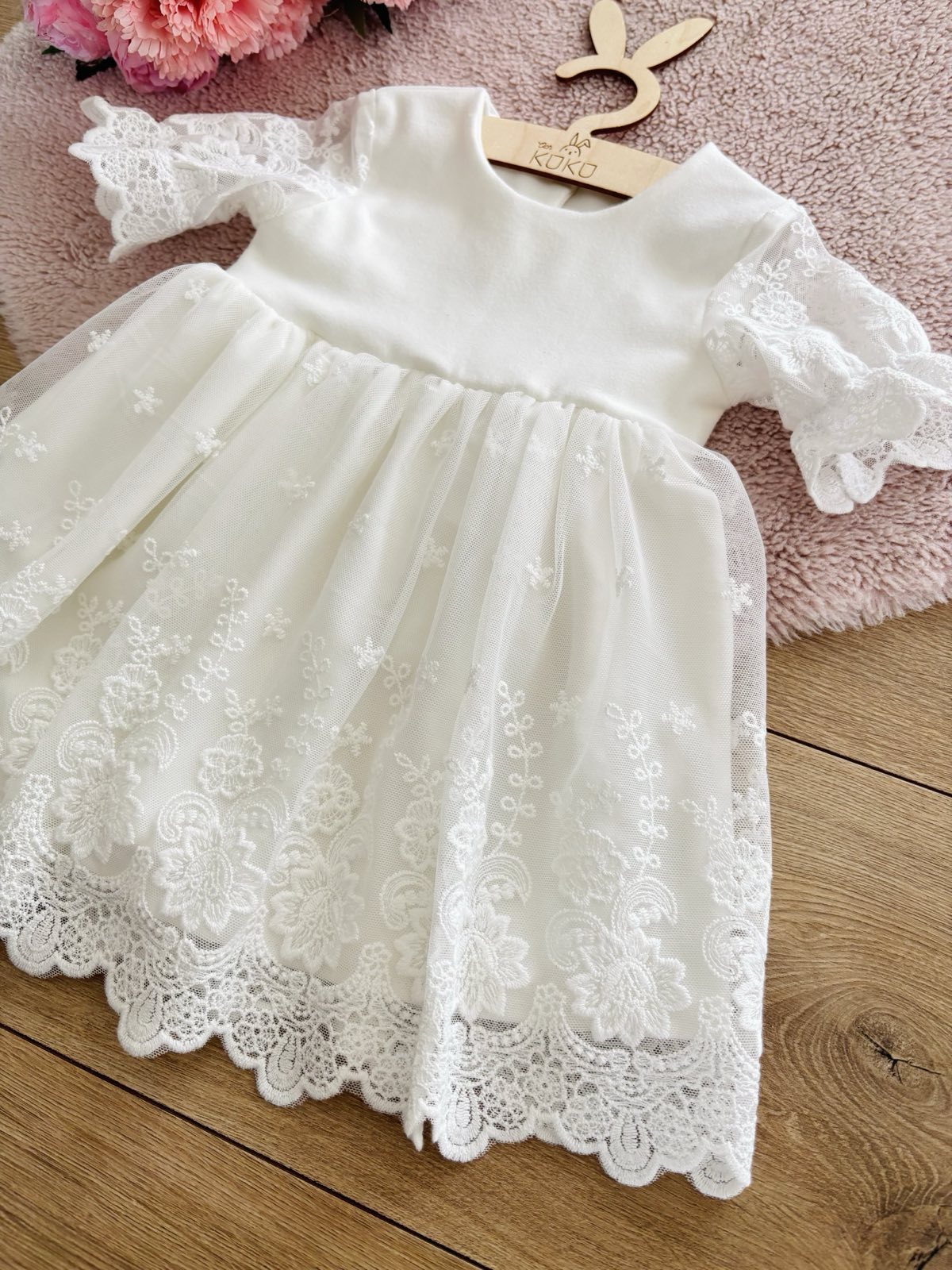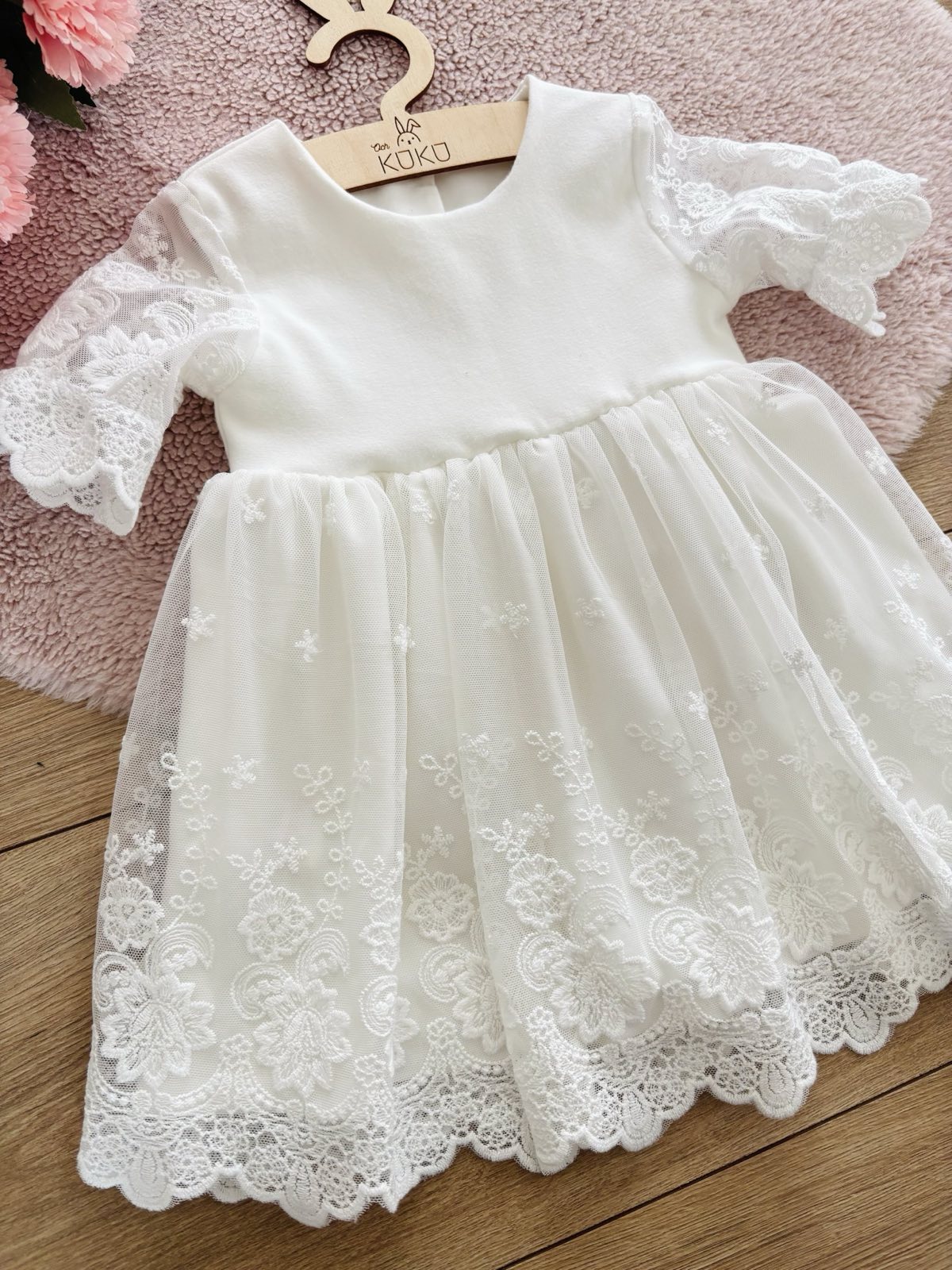 Sukienka do chrztu z haftowanym tiulem