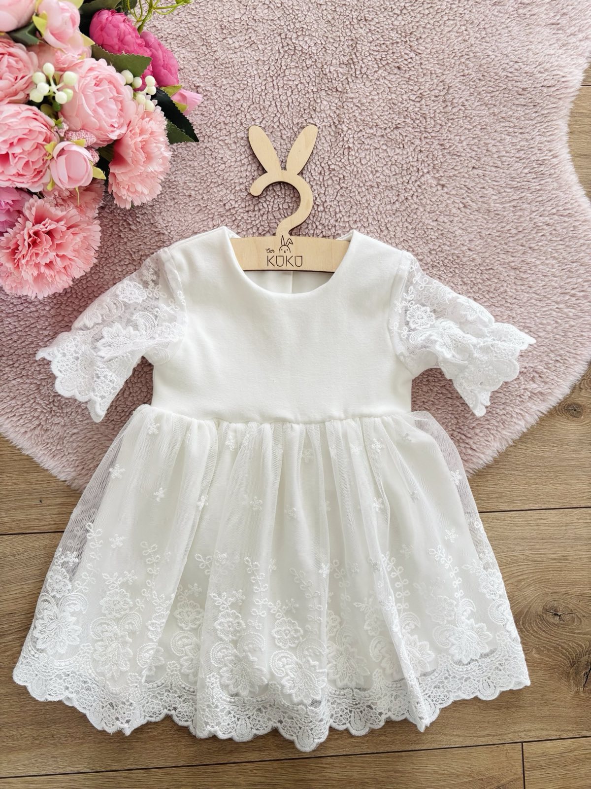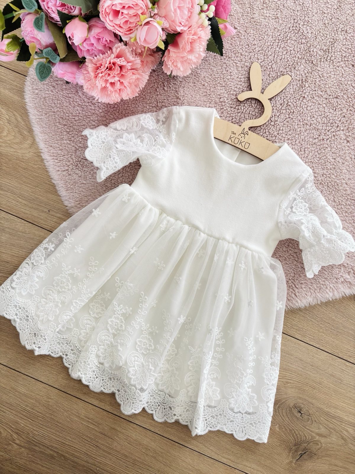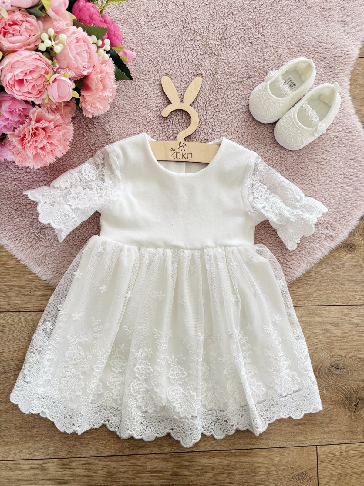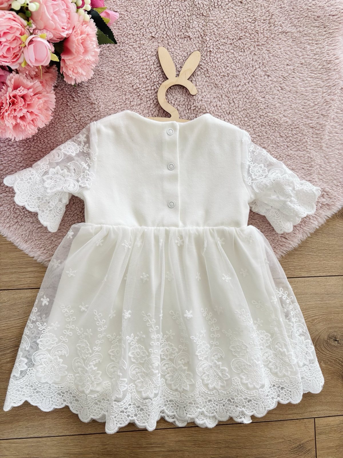 Sukienka do chrztu z haftowanym tiulem